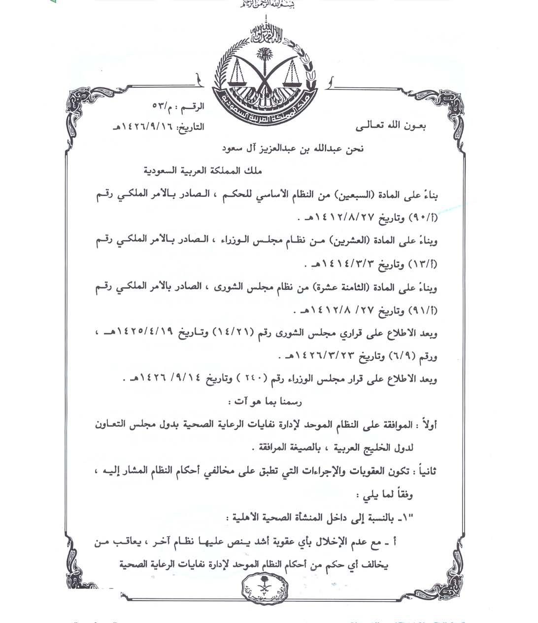مرسوم ملكي رقم م/53 بتاريخ 16 / 9 / 1426