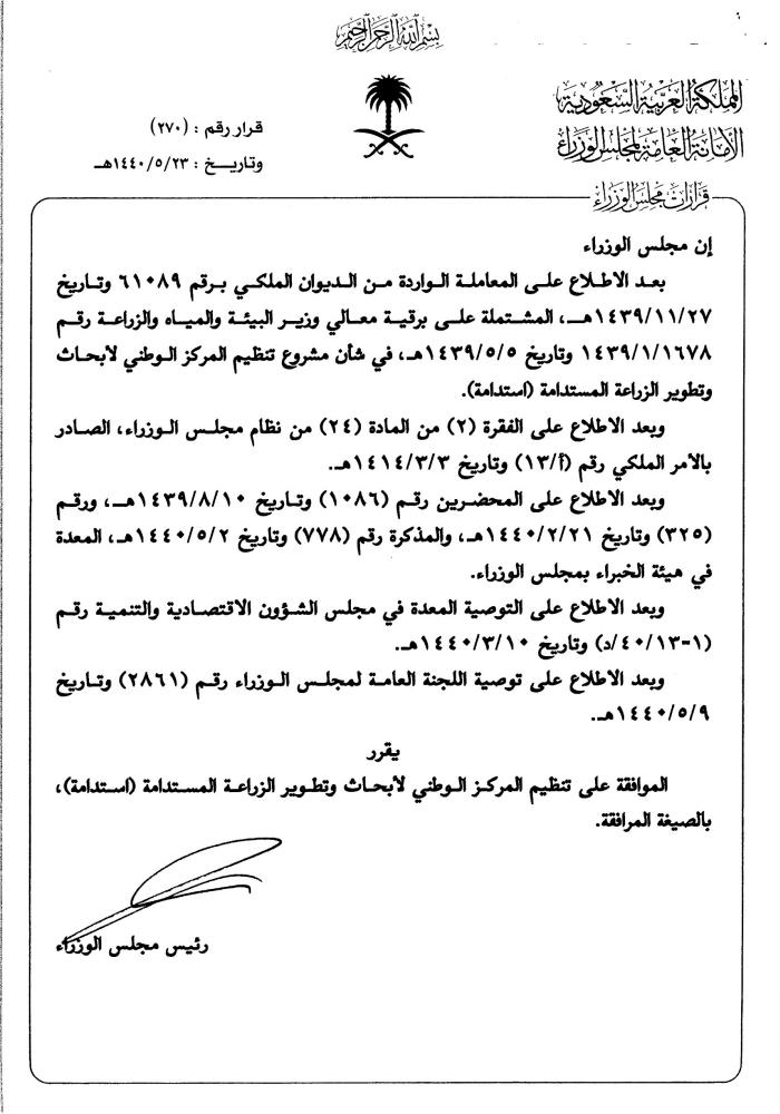 قرار مجلس الوزراء رقم (270) وتاريخ 1440/5/23هـ